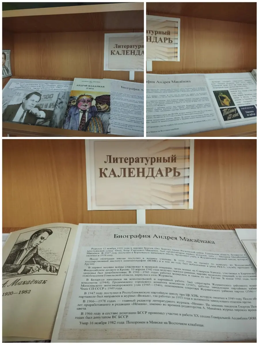 В ноябре библиотекой подготовлены книжные выставки, на которых представлено творчество белорусских писателей В. Короткевича и А. Макаёнка, а также поэтов и писателей А. Блока и Р.Л. Стивенсона.