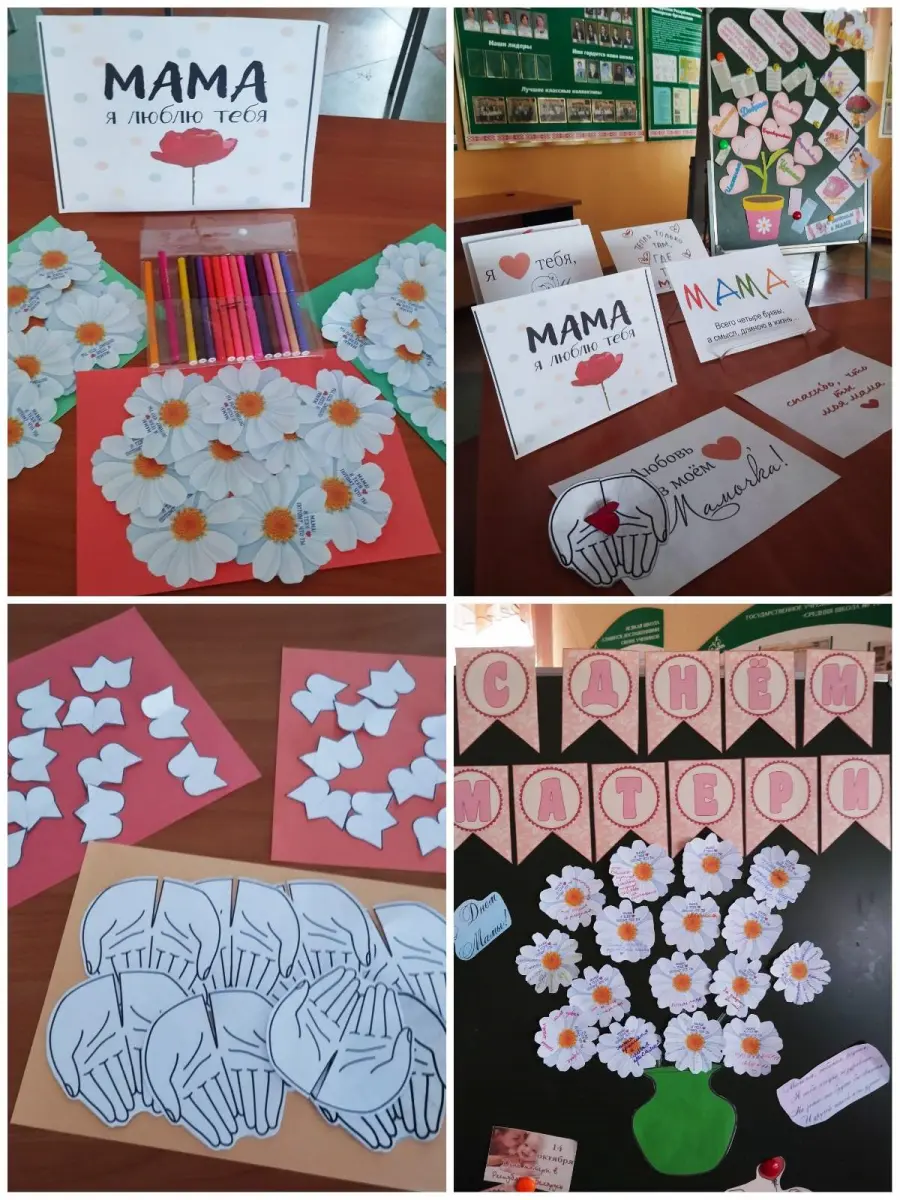 В рамках мероприятия для учеников был организован мастер-класс «Сердце в ладошках», на котором ребята изготовили символичные подарки для своих мам. Также был представлен информационный стенд «Букет для мамы», где собраны добрые слова и тёплые пожелания. Участники смогли узнать интересные факты о празднике и выразить свою любовь и благодарность мамам. Мероприятие позволило создать атмосферу семейного тепла и внимания к самым дорогим людям.