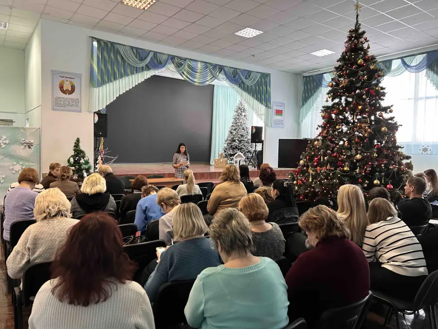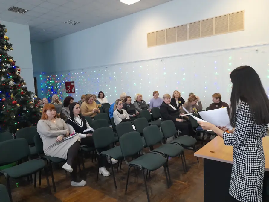 Коллектив нашего учреждения собрался в актовом зале, где услышал докладчика О.В.Семенькову:
