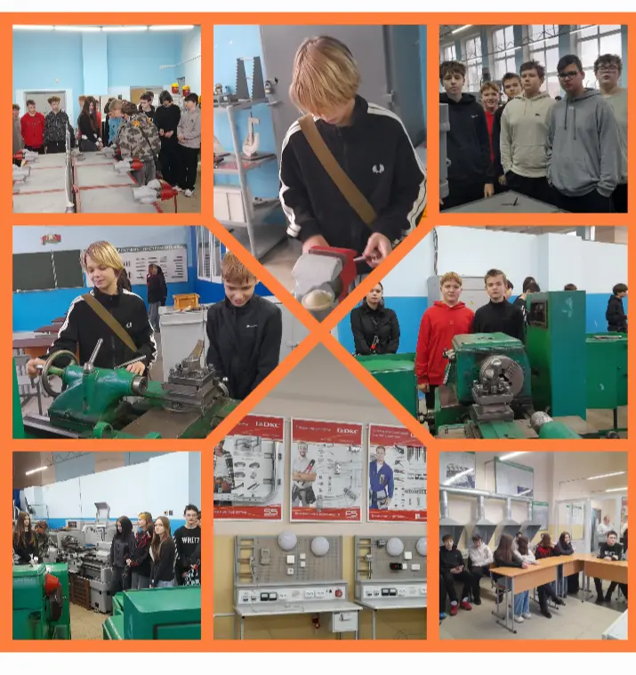Ребятам показали учебные мастерские, кабинеты, где они увидели станки и машины, на которых учатся быть мастерами своего дела будущие токари и фрезеровщики, автослесари и электромонтёры, продавцы-кассиры и повара-кондитеры, модельеры и технологи. Восьмиклассники и сами могли попробовать себя "в деле" на некоторых специальностях.