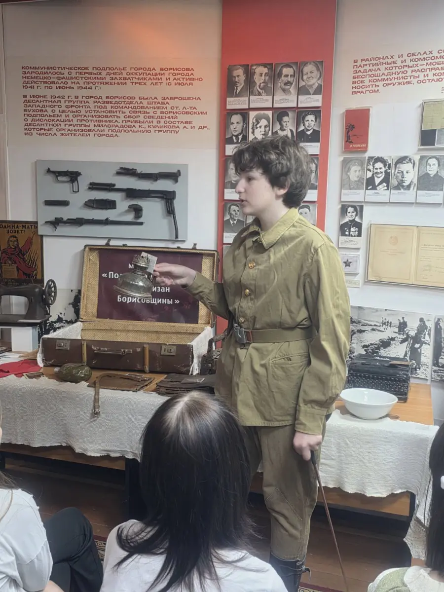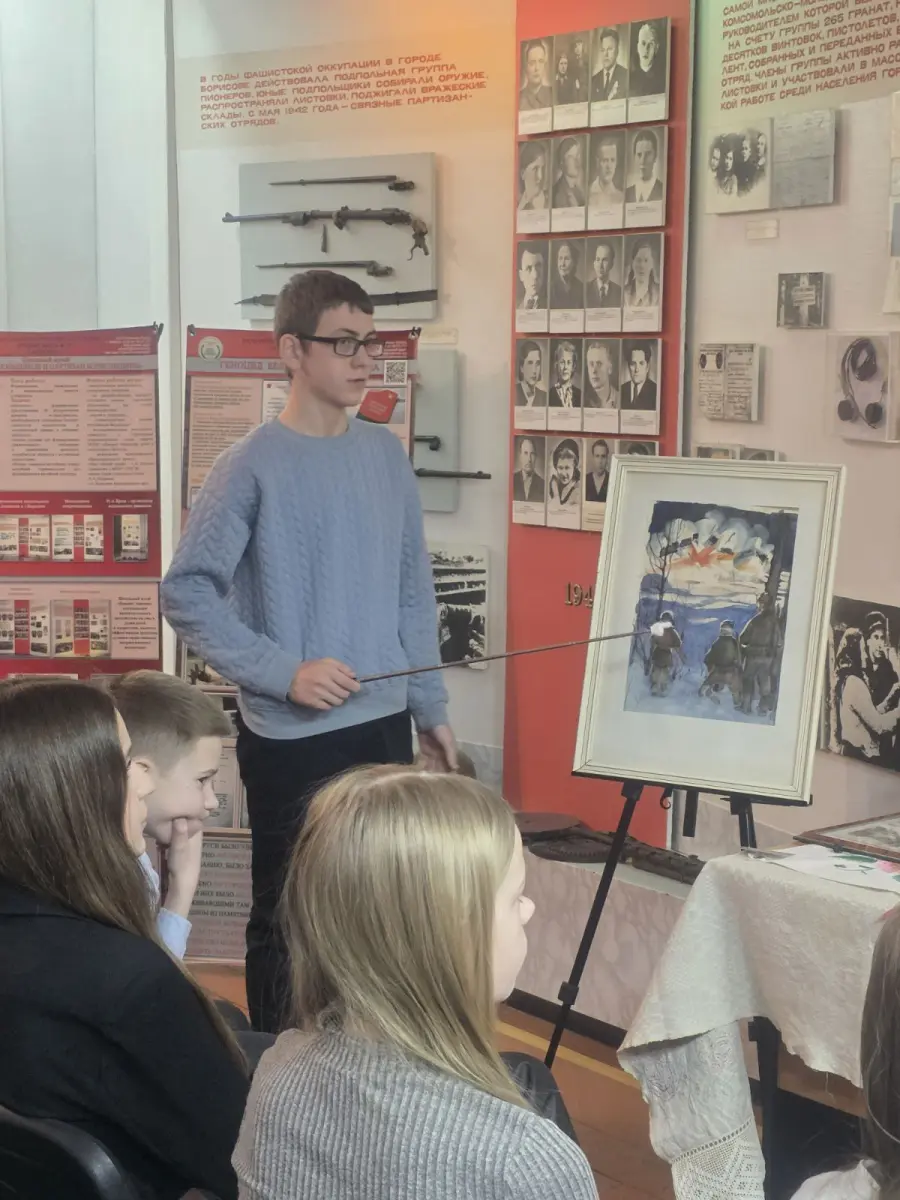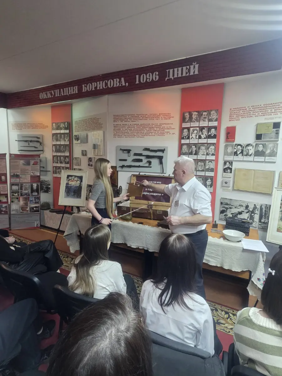 6 апреля 2026 года в рамках 15 педагогического марафона Минской области по теме "Развиваем таланты - создаём будущее" на базе музея "Подвиг подпольщиков и партизан Борисовщины" Государственного учреждения образования "Средняя школа N18 г.Борисова" проведена экскурсия "Экспонаты музея. Как много они говорят!".