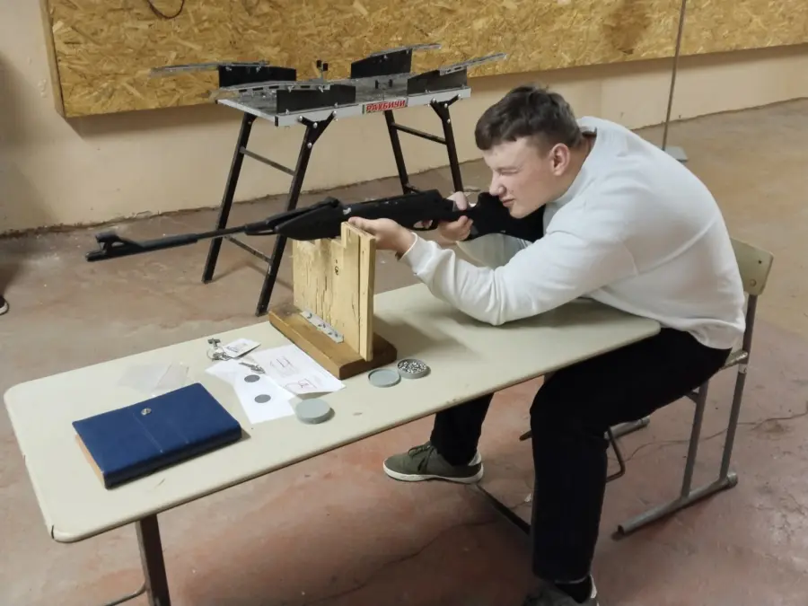 6 декабря 2025 года в рамках выполнения мероприятий программы факультативного занятия "Готовы Родине служить" учащиеся 10"Б" класса патриотической направленности выполнили упражнение учебных стрельб из пневматической винтовки.