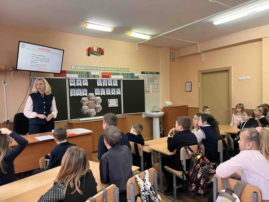 Учитель-дефектолог Шишкина Т. И. познакомила учащихся с примерами выдающихся людей, имеющих инвалидность. Нарушения развития не помешали этим личностям добиться значительных успехов в музыке, спорте, искусстве. На личном примере ребята могли почувствовать как тяжело воспринимать мир людям без зрения, слуха и с ограниченными движениями. Работа в творческих группах учащихся под руководством классного руководителя Шутовой Ж. Е. была направлена на формирование у них толерантного отношения, доброты и сострадания к детям- инвалидам.