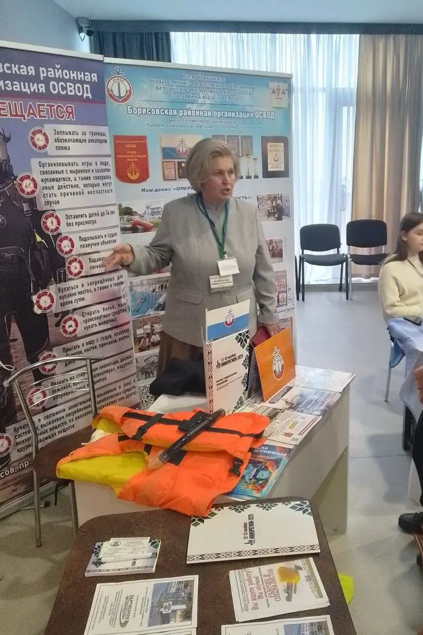 В День безопасности на водах учащиеся 10 классов имели возможность побеседовать с председателем БРОО ОСВОД Великохатько Н.А. Ну и, конечно, не могли уйти без наглядных листовок, ведь приближается зимний период, а вопросы безопасности на воде и льду остаются актуальными.