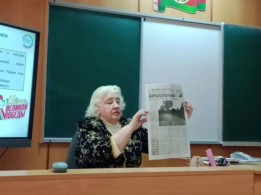 Объединила участников встречи тема : "Быть достойным гражданином Республики Беларусь - значит знать и уважать историю своей страны, белорусского народа". Для каждого из участников слова "Родина", "история", "народ", "страна" не пустые слова: для Регины Петровны за этими словами целая жизнь, посвященная любимому делу, а для учащихся - большие надежды и ожидания. Наша гостья с большим энтузиазмом рассказала ребятам о своей педагогической деятельности, о работе по созданию школьного музея "Подвиг подпольщиков и партизан Борисовщины", и его значении для её юных воспитанников.