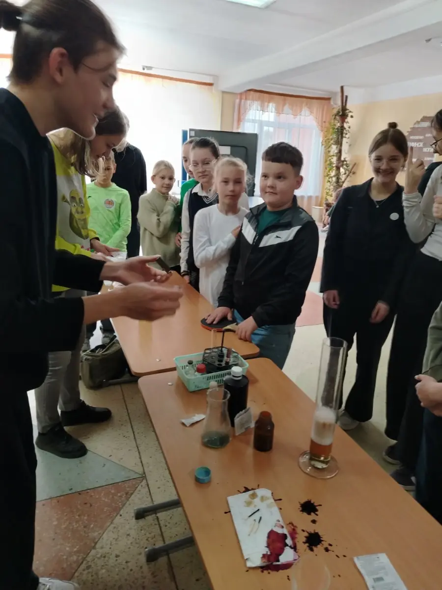 Педагоги пригласили всех на интеллектуальную игру⚗️ ,,Химико- биологический бой". Старшеклассники провели практикум🔬 ,,Химический калейдоскоп",где под руководством педагогов продемонстрировали простейшие химические реакции. Школьники приняли активное участие в⏰️ ,,Историческом батле",где вспомнили основные даты и исторические события, а так же путешествовали 🌎,,По географической карте".