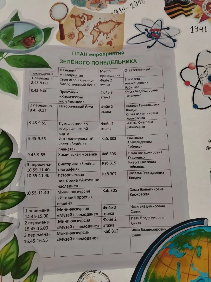 В ходе🟢 ,,Зелёного понедельника" школьники проверили свои знания и получили бонусы. Интересно прошёл конкурс ,,зелёных нарядов". Каждый конкурсант стал победителем в разной номинации. Многолюдно было и на биолого- географическом квесте ♻️"Зелёная планета - зелёная география", а так же при проведении викторины🕍 ,,Античное наследие"🏛.