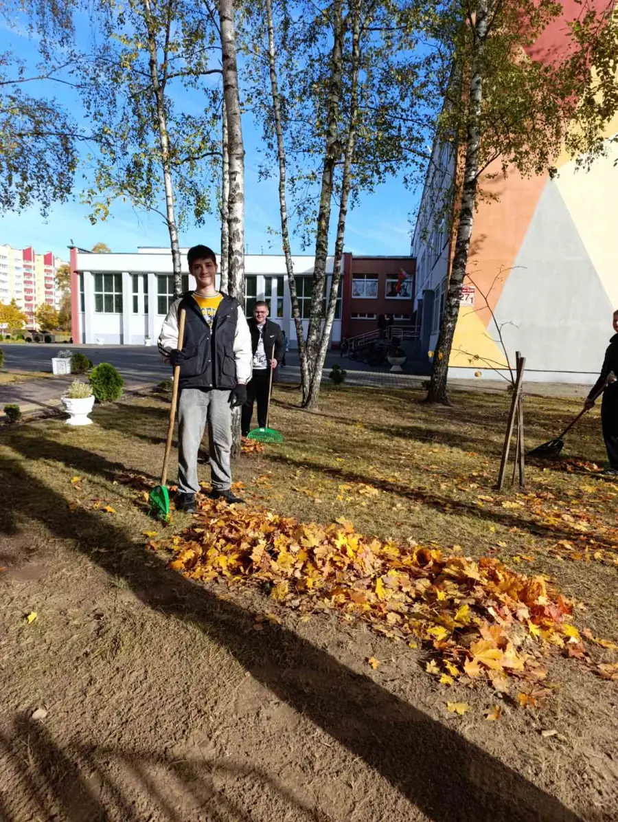 11 октября в очень солнечный и безветренный день учащиеся 10А и 9-х классов с азартом и большой результативностью убирали закрепленную территорию от опавшей листвы.