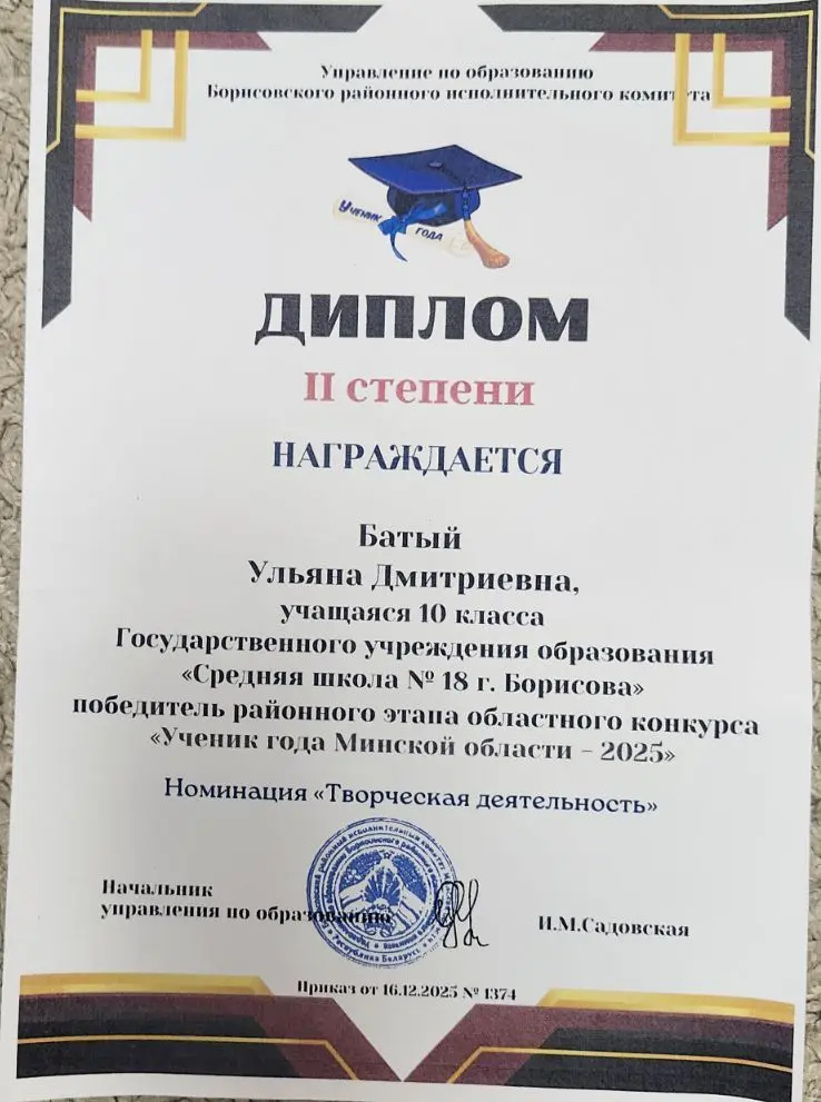 у Батый Ульяны ( номинация " Творческая деятельность")