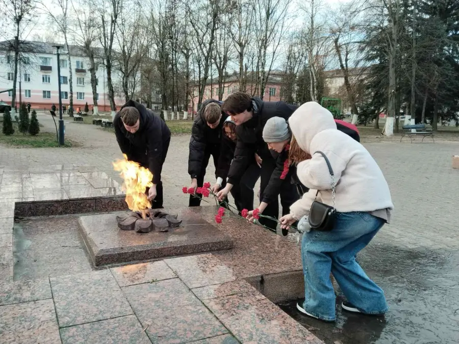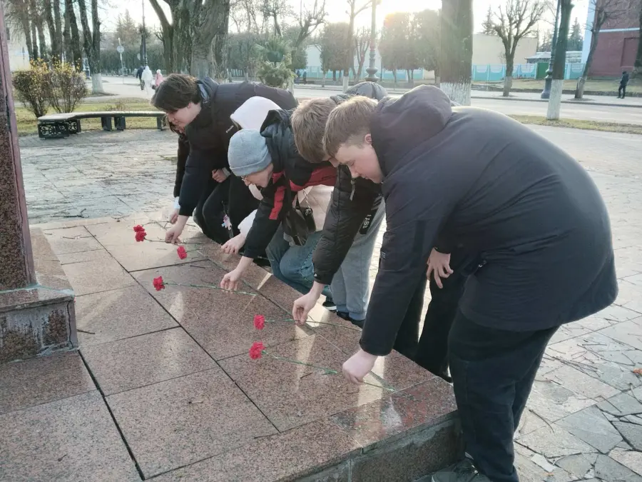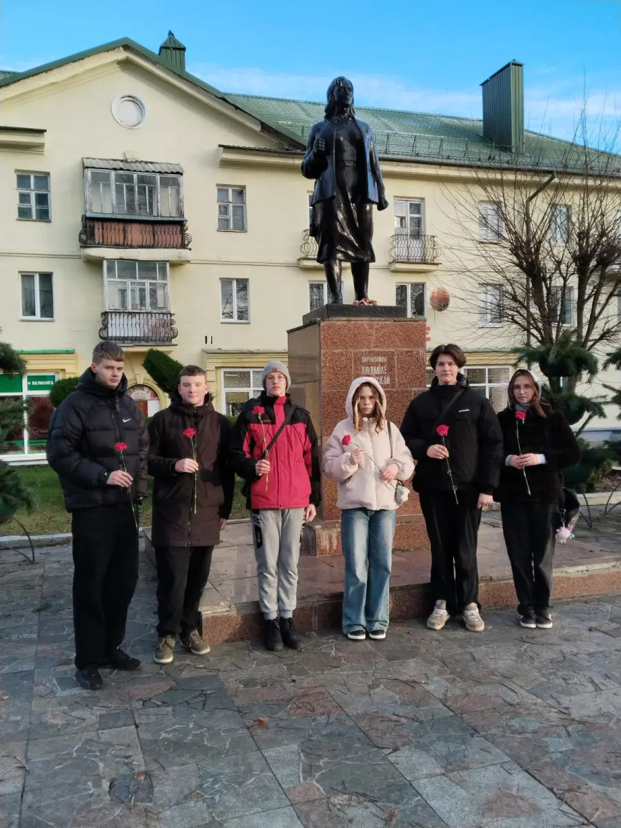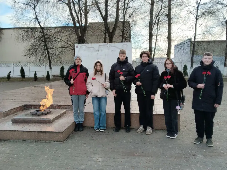13 декабря 2025 года учащиеся 10Б и 11А классов патриотической направленности в рамках факультативного занятия "Готовы Родине служить!" возложили цветы к вечному огню у стеллы "Жертвам фашизма" и к памятнику Люсе Чаловской.
