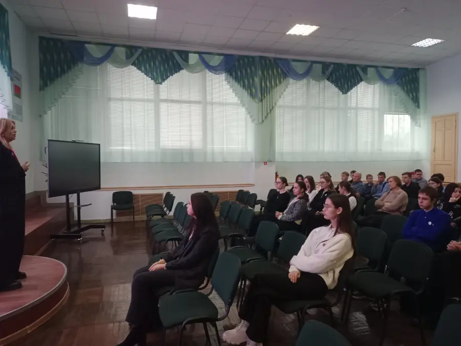 В гостях присутствовали: Козел Ирина Михайловна, специалист по социальной работе и адвокат Минской областной ассоциации адвокатов Денисова Людмила Евгеньевна. Выступая перед учащимися, Людмила Евгеньевна рассказала о юридической ответственности за кражу чужого имущества, незаконный оборот наркотических средств, психотропных веществ и их аналогов, преступления против половой неприкосновенности, подкрепив все примерами из своей судебной практики. Также Людмила Евгеньевна напомнила ребятам о правах и обязанностях учащихся в соответствии с кодексом Республики Беларусь об образовании, рассказала о конституционных правах и обязанностях граждан Республики Беларусь. В завершении выступления учащиеся смогли задать интересующие их вопросы.