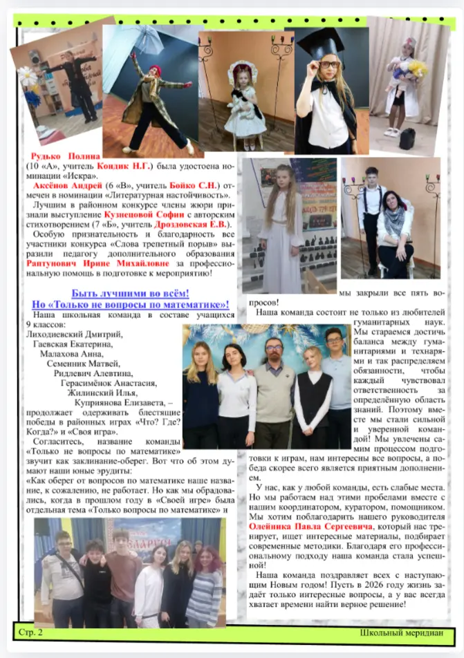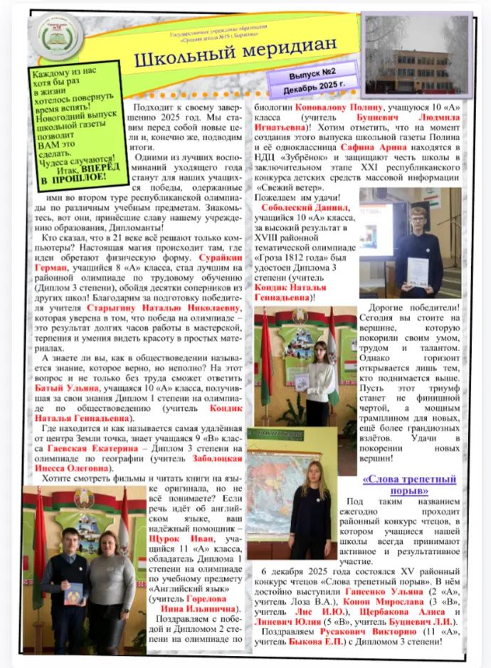 Участники объединения по интересам "Юный журналист" подготовили выпуск N2 школьной газеты по итогам 2 четверти. В материалах - информация об успехах и планах на будущее самых активных учащихся.
