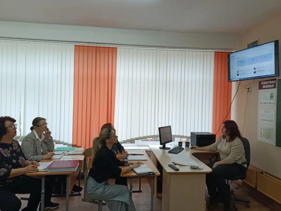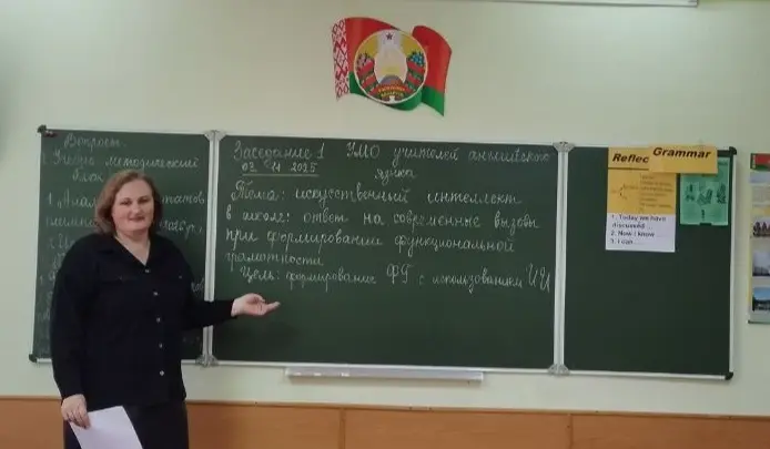 На заседании учителей английского языка был дан анализ результатов участия учащихся в 1 и 2 этапах Республиканской олимпиады по учебному предмету "Английский язык". Отмечен высокий результат учащегося 11"А" класса Щурка Ивана (учитель Горелова И. И.) , который повторил свой прошлогодний результат, завоевав Диплом 1 степени во 2 этапе, и вышел в 3 этап. На заседании подвели итоги 1 четверти 2025/2026 учебного года и наметили шаги, направленные на повышение мотивации и качества знаний учащихся. С этой целью далее учителя УМО раскрыли следующие вопросы: "Функциональная грамотность учителя - основа функциональной грамотности учеников" (Горелова И. И.), "Практическое применение принципов функциональной грамотности в достижении все стороннего развития учащихся" (Лещенко А. И.), "Применение искусственного интеллекта на уроках английского языка для всё стороннего развития учащихся" (Гаевская А. В.).